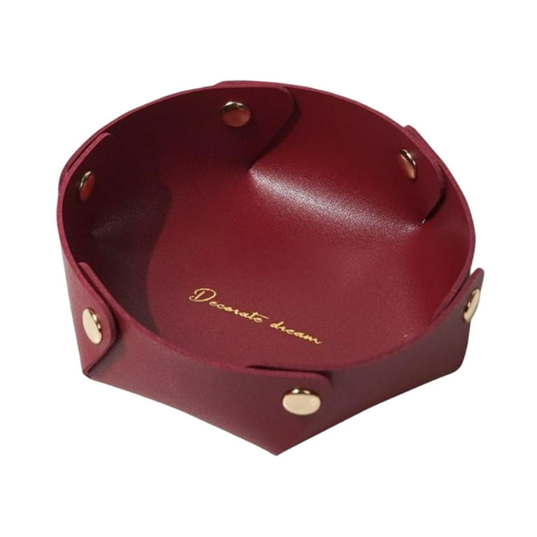 Bedside Table Valet Tray Trinket Holder NightStand Organizer PU Leather Valet Tray Tabletop Leather Tray for Jewelry Office Equipment Red Very well made.