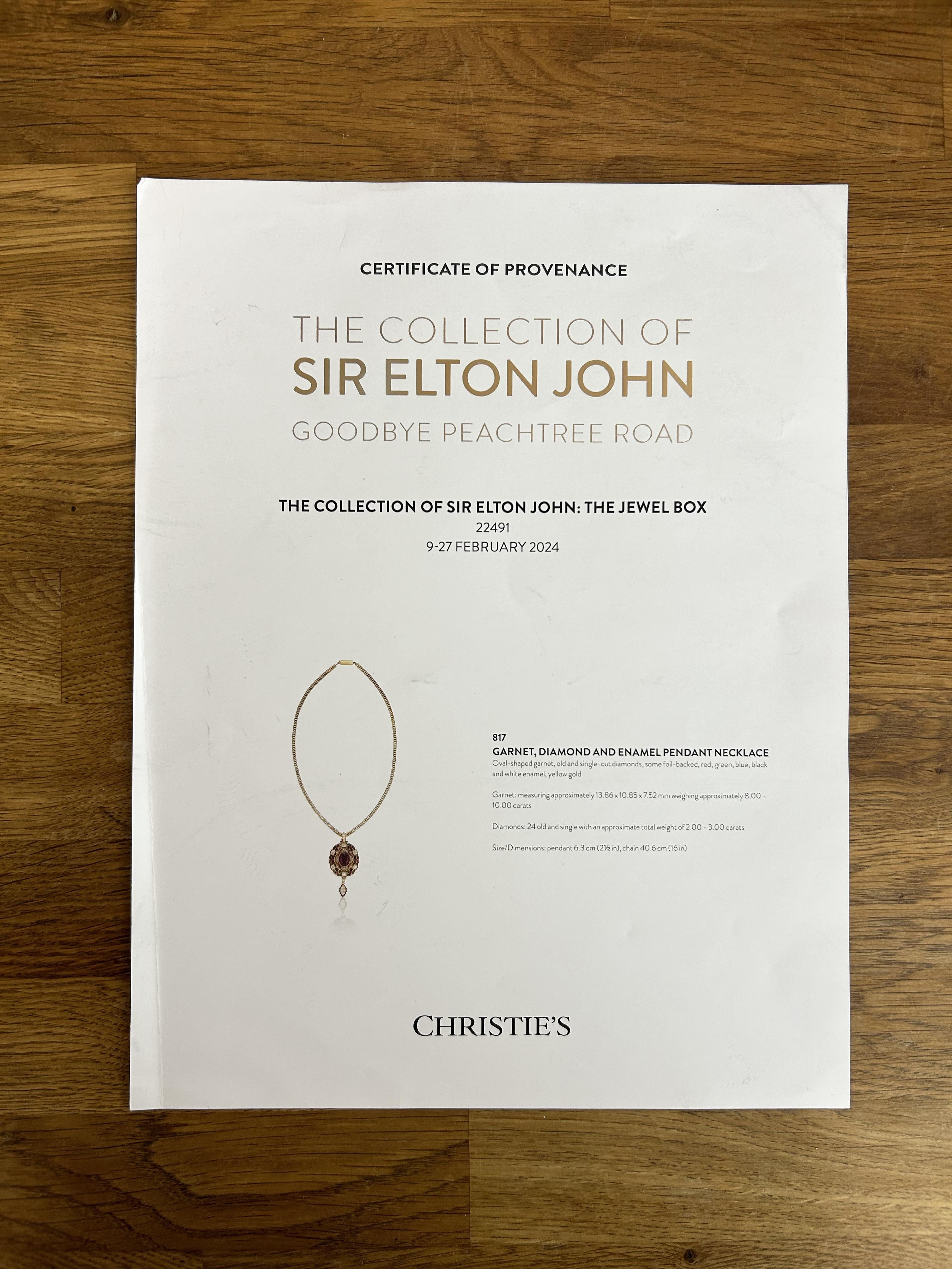 Antique Garnet Diamond and Enamel Pendant Necklace Sir Elton John Co The Vintage Jeweller Very well made.