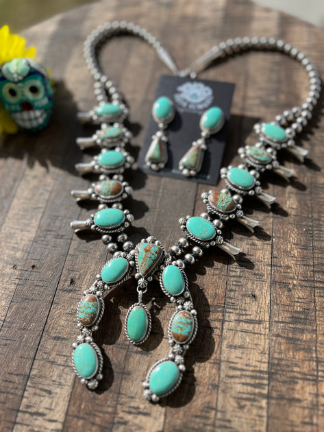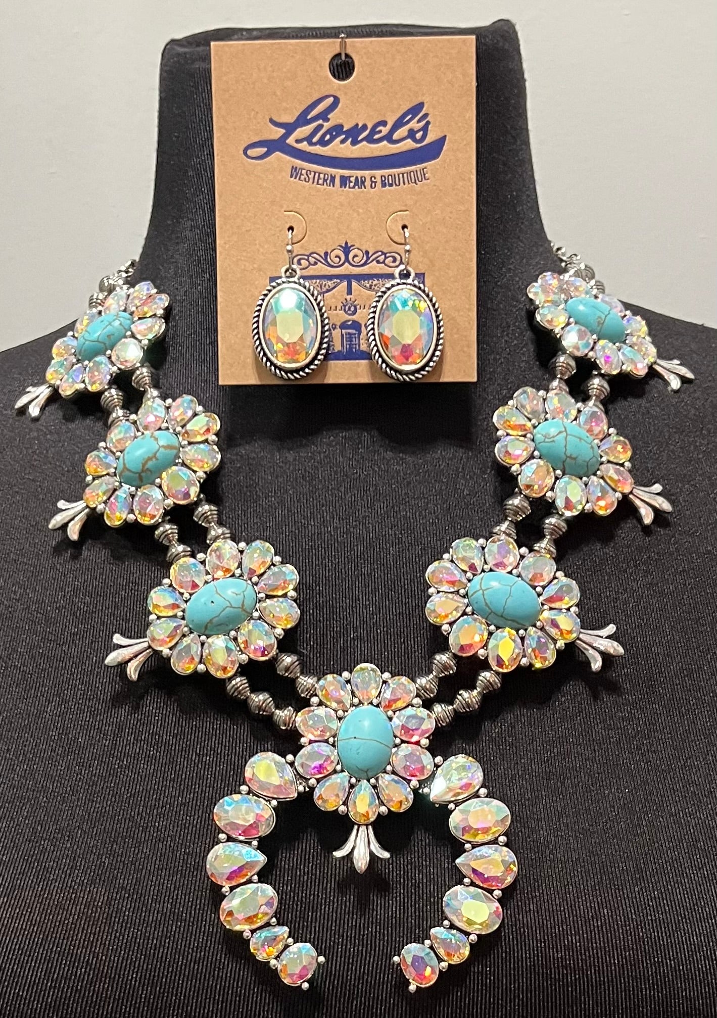 AB Crystal Turquoise Squash Blossom Necklace Set Very well made.