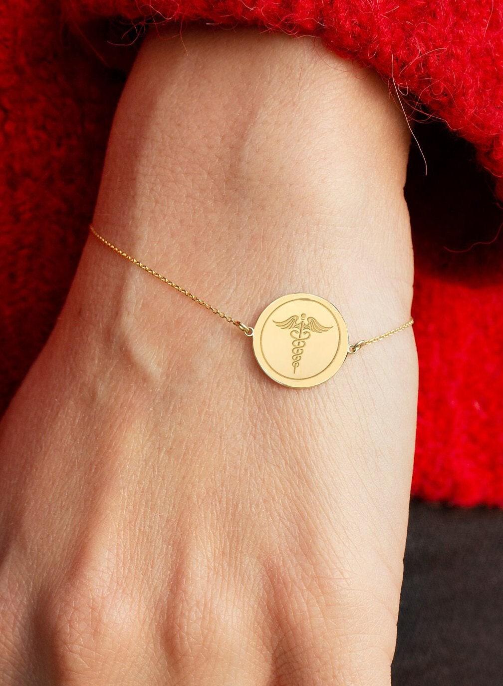 Buy 14K Solid Gold Medic Disc Bracelet Caduceus Symbol Bracelet Allergy Information Jewelry Rod of Asclepius Bracelet Doctor Bracelet Gift Online in India Etsy Very well made.