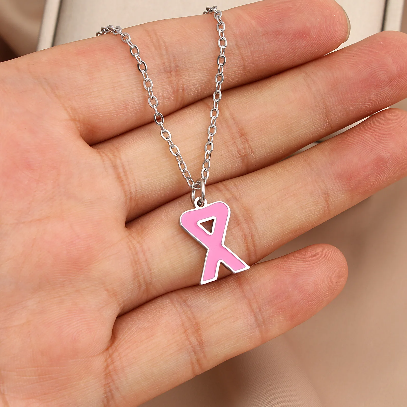 Personalized Sterling Silver Initial Breast Cancer Survivor Necklace Awareness Pink Ribbon Necklace Cancer Survivor Gifts for Women Very well made.