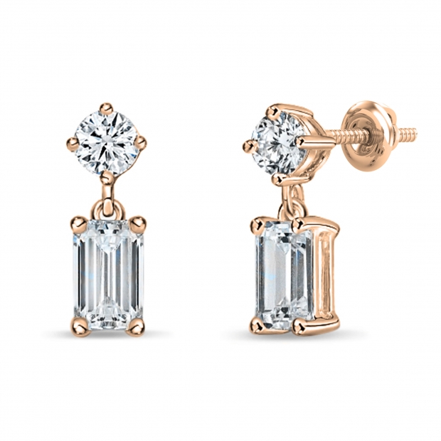 Buy 0.75 ctw Emerald Round Lab Grown White Diamond Drop Earrings for Women in 10K Rose Gold in Screw Back Online at Dazzling Rock Very well made.