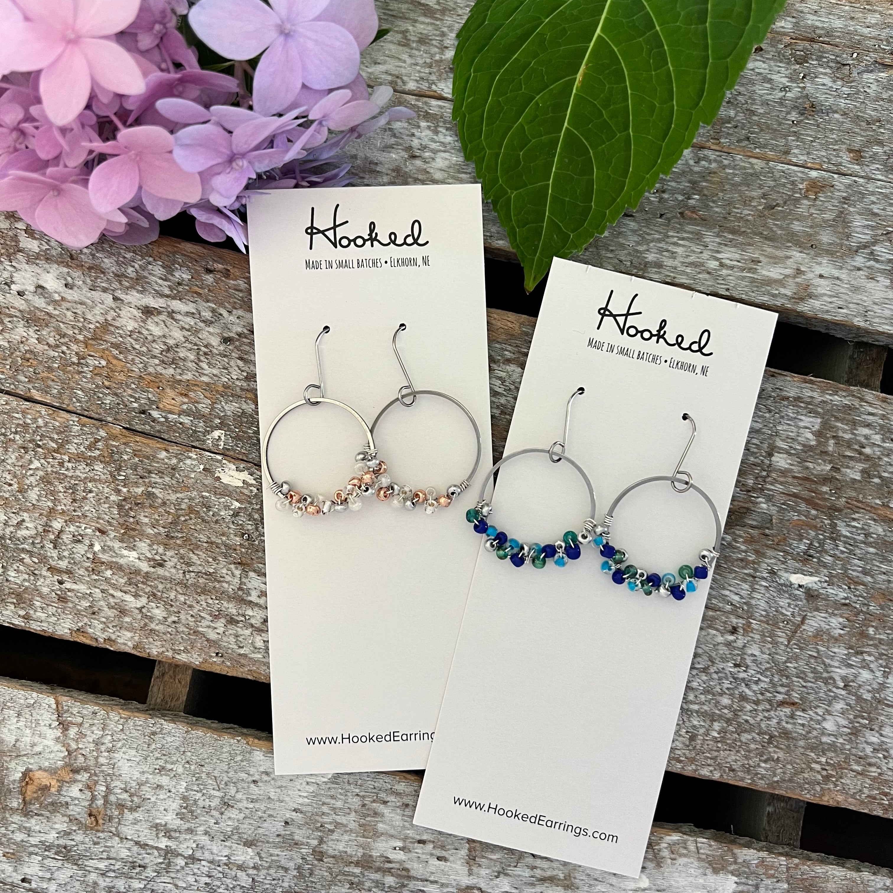 Beaded Hoop Dangle Earrings Silver and Rose Gold Very well made.