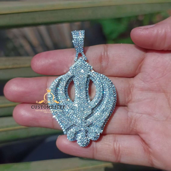 Khanda Diamond Passes Tester Moissanite Pendant 14K White Gold Over Sikhism Symbol Charm Pendant Religious Customized Pendant 2.5 Inches Etsy Very well made.