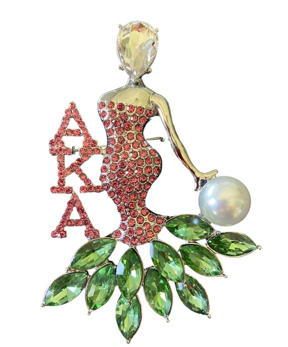 AKA Rhinestone Brooch Ladies Pink Floral Pin White Sorority Pearl Womens Fancy Gift Green Bling Jacket Jewelry College Black History Girls Etsy Very well made.