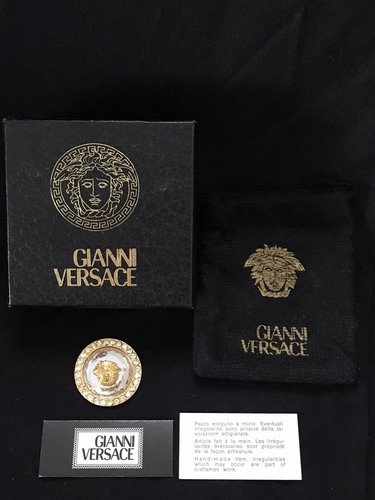 Only 1 New Signed VERSACE Gold Plated Medusa Crystals Pin Brooch Sold Out eBay Very well made.