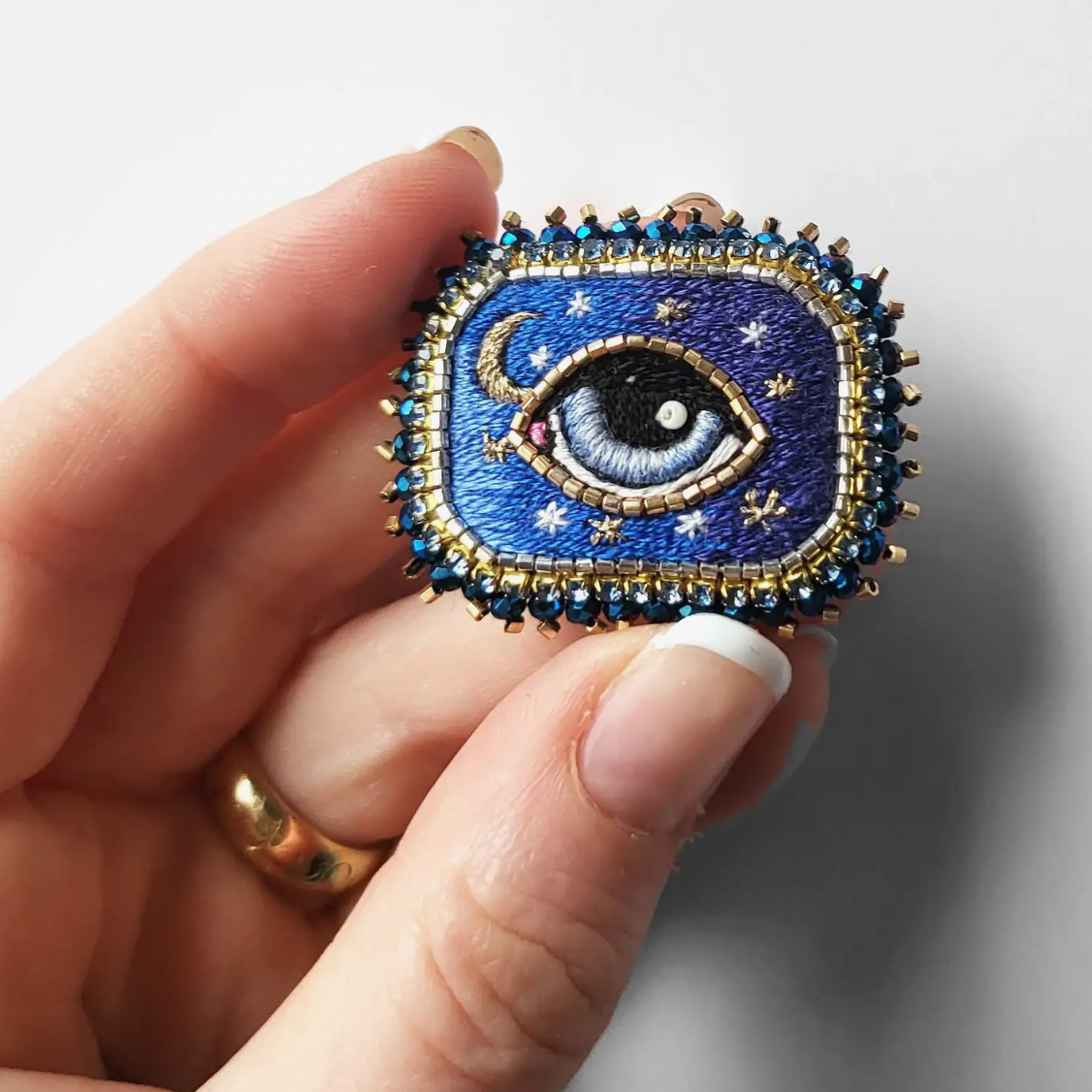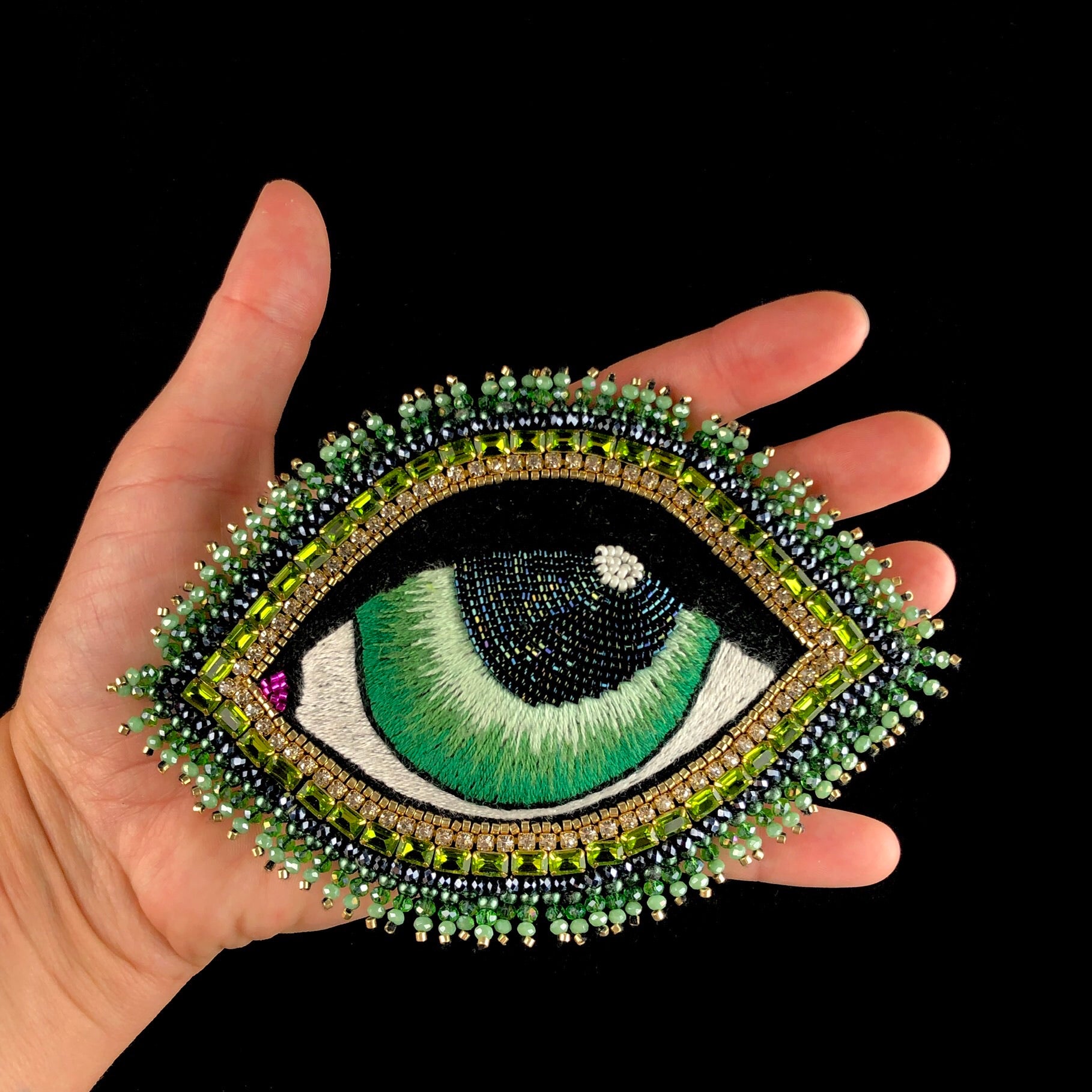 Midnight Eye Hand Embroidered Beaded Brooch Mutual Adoration POST Very well made.