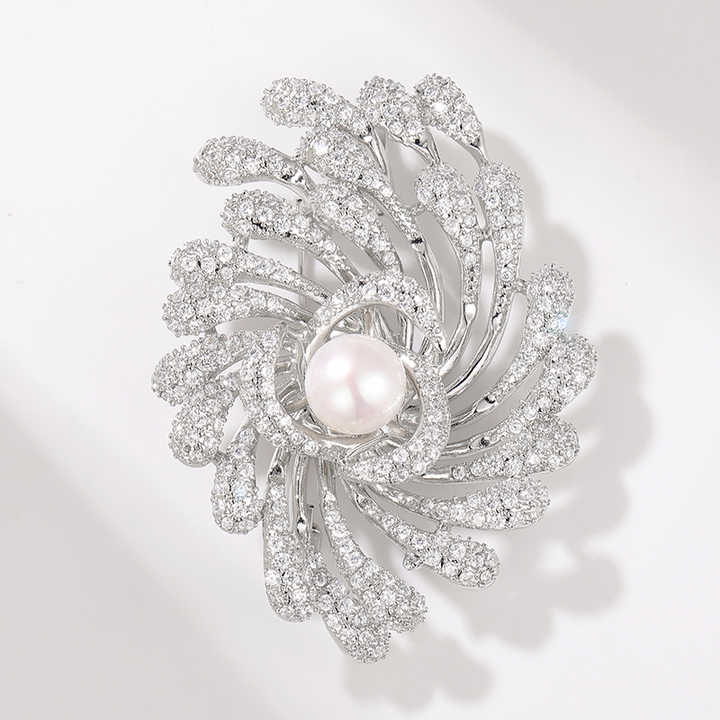 XILIANGFEIZI Fashion Luxury Jewelry Copper Pearl Brooch pin 18 K Gold Shiny Full Zircon Firework Brooches Very well made.