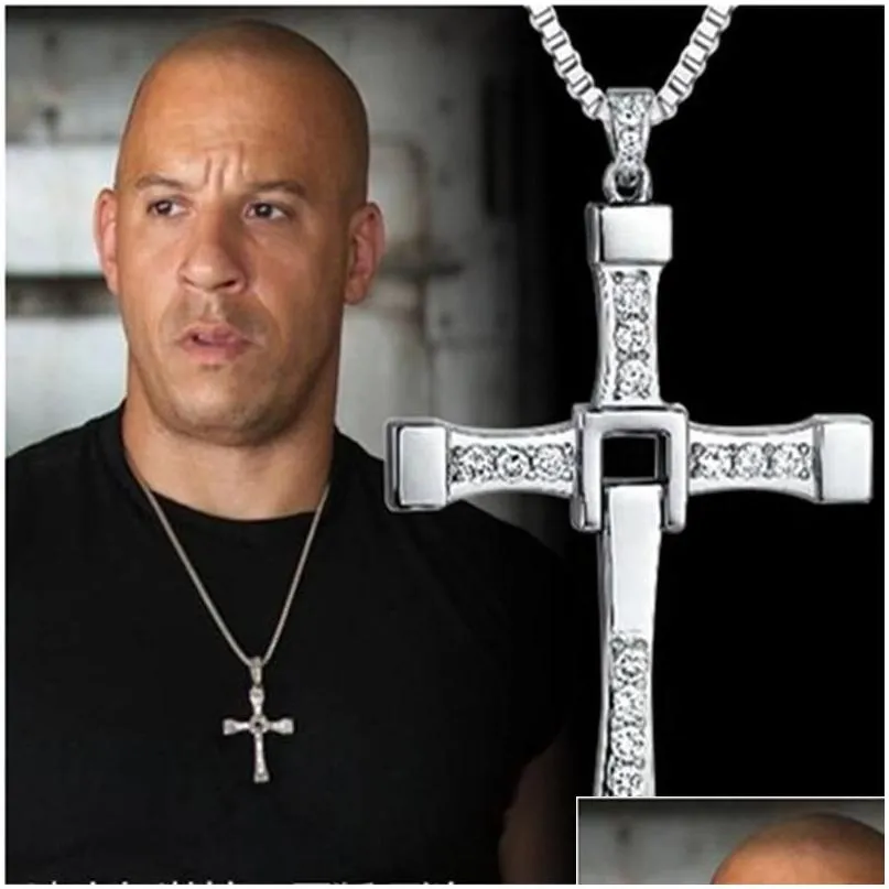 DHgate Mens Cross Necklace Stainless Steel Fast Furious 9 Dominic Toretto Crystal Pendant Jewelry Very well made.