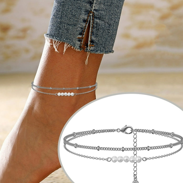 Wozhidaoke Ankle Bracelets For Women Boho Double Layer Gold Anklets For Women Pearl Beads Pendant Foot Chains Beach Bracelet Anklets Birthday Gifts Very well made.