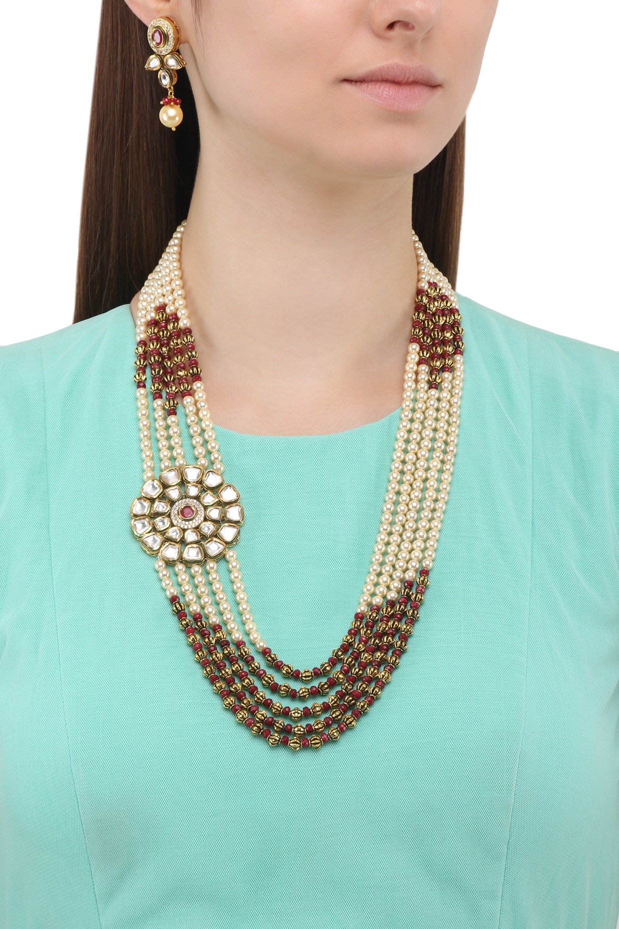 White Long Mango shape Matte finish kemp stone pearl Necklace set temp PencilboxShopUSA Very well made.