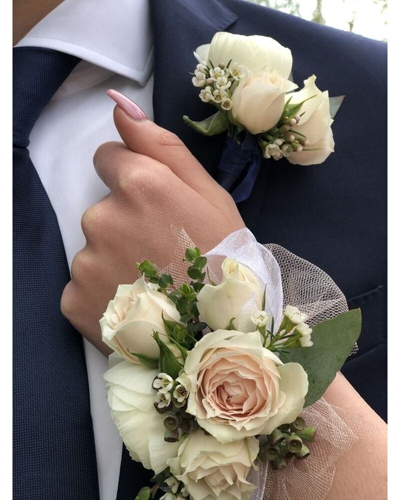 White Rose Corsage and Boutonniere Combo in Brooklyn NY Marine Florists Very well made.