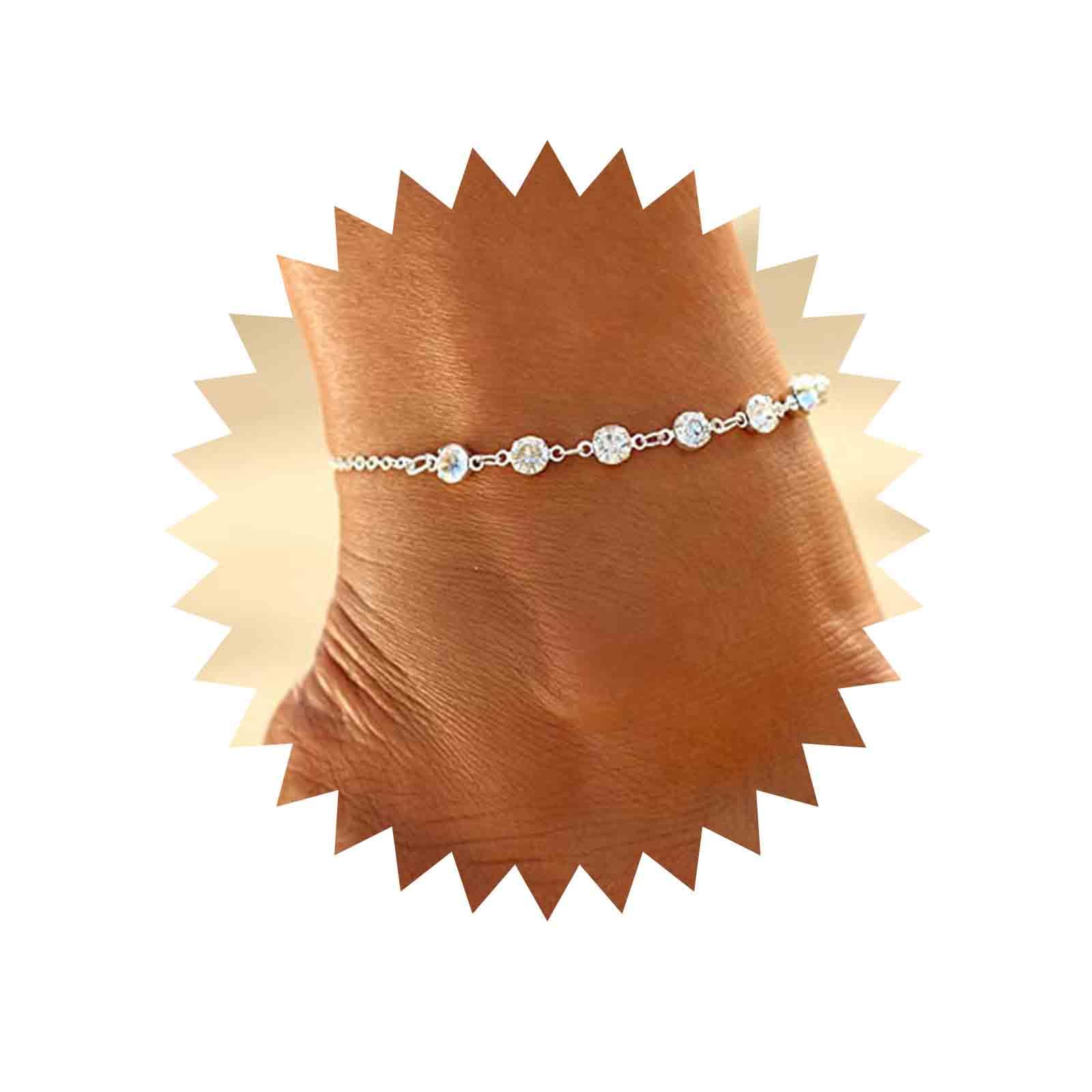 Aneneiceera Boho Rhinestone Anklet Silver Ankle Bracelets Simple Ball CZ Anklet Wedding Crystal Anklet Beach Foot Accessories Jewellery for Women and Very well made.