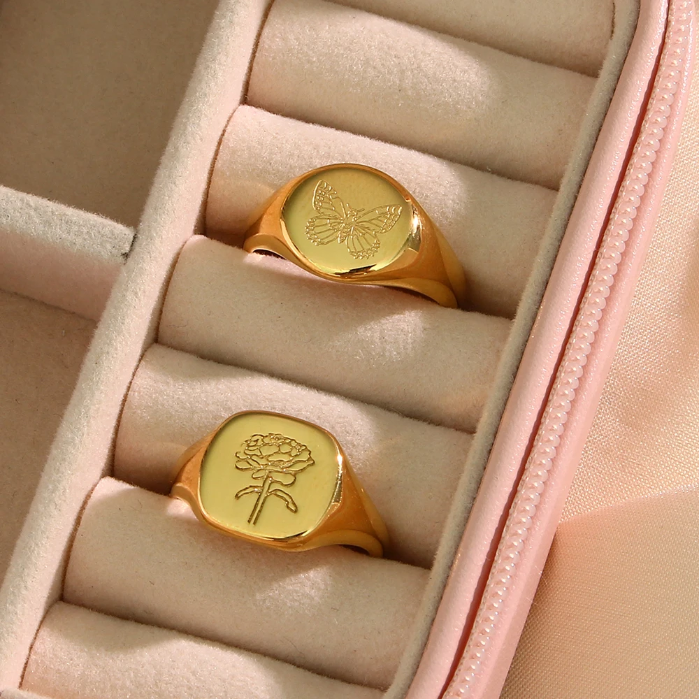 E.B.belle Engraving Butterfly Hibiscus Flower Signet Ring Stainless Steel 18K Gold Plated Women s Chunky Ring Vintage Jewelry AliExpress 36 Very well made.