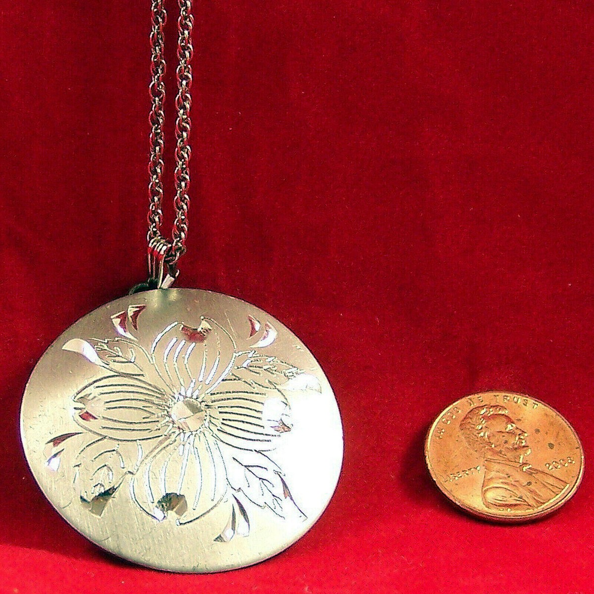 Necklace Engraved Pewter Silvertone Round Pendant Dogwood Flower 24 Chain Very well made.