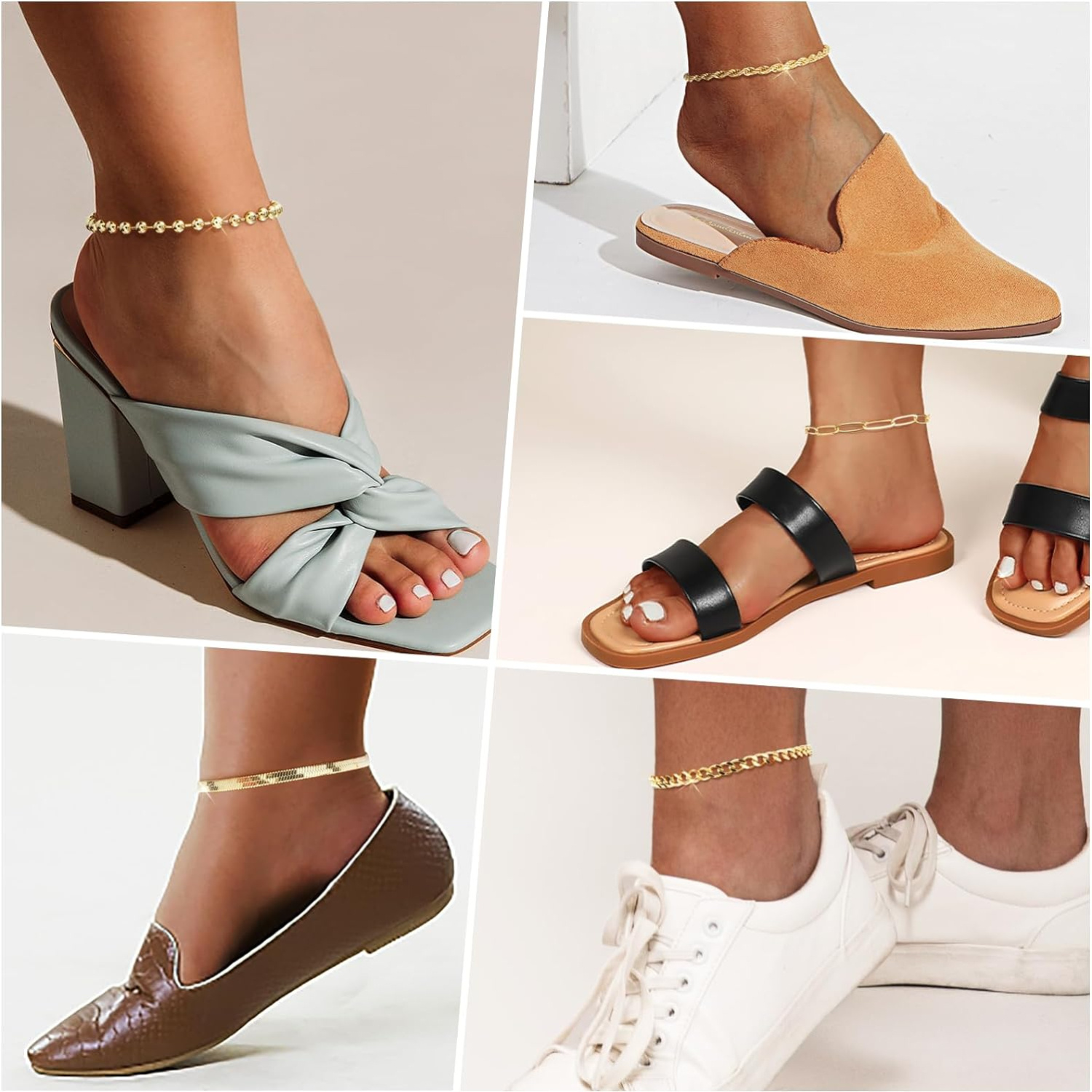 14K Gold Plated Plus Size Ankle Bracelets with Lobster Clasp Cuban Figaro Rope Chain Designs for Women Waterproof Adjustable JewelryOnLight Very well made.