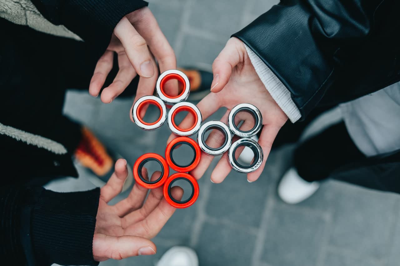 Amazon Fingears Magnetic Rings Set of 3 Fidget Toy Great Gift for Teens Adults ADHD Stress Relief Fidget Silver Red Toys Games Very well made.