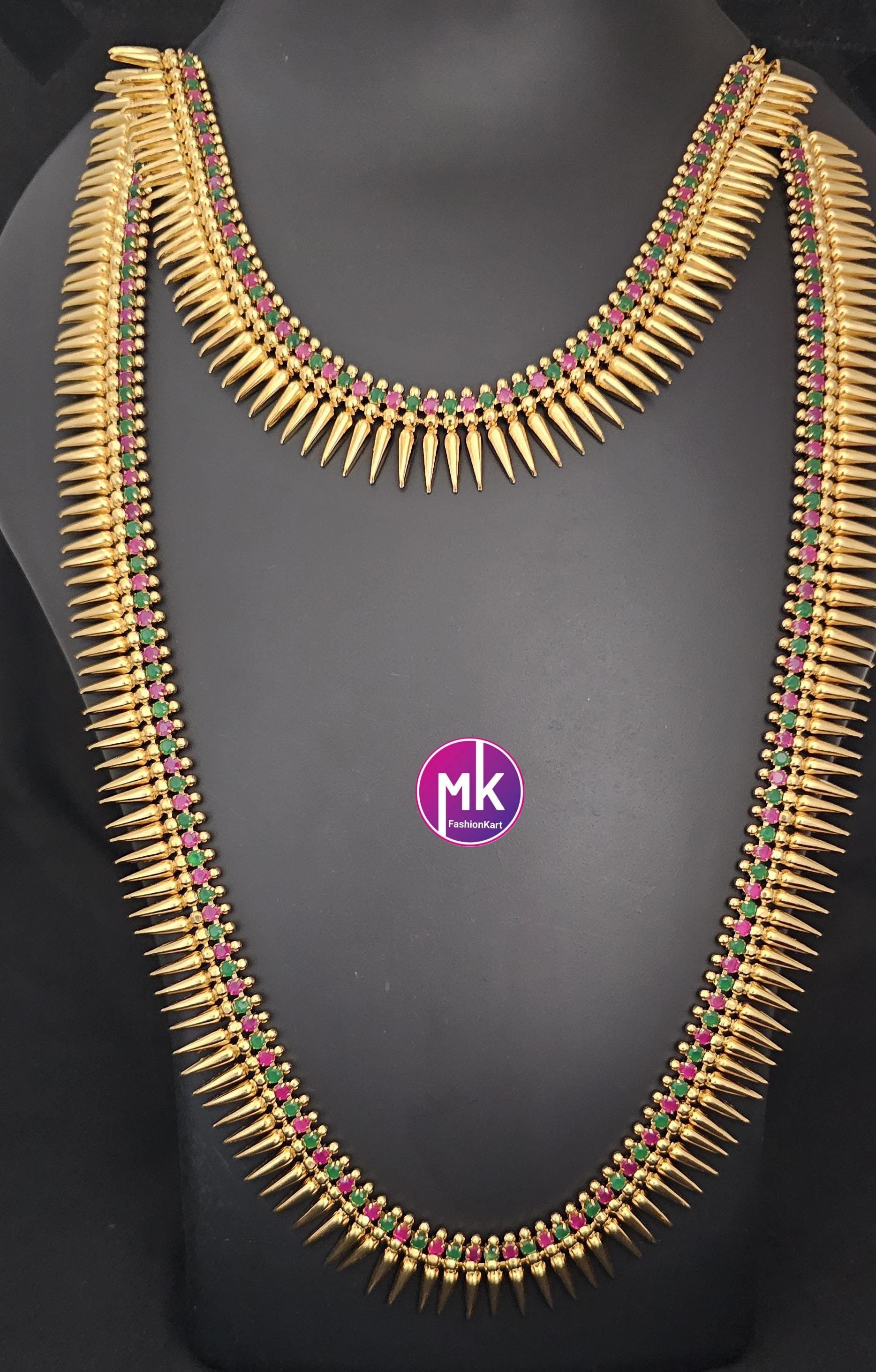 La Grace Kerala traditional design long Mullamottu mala studded with ruby stones. 1gm gold micro plated guaranteed set packingtime lagrace lagraceint keralajewellery mullamottumala pichimottumala mull... Very well made.