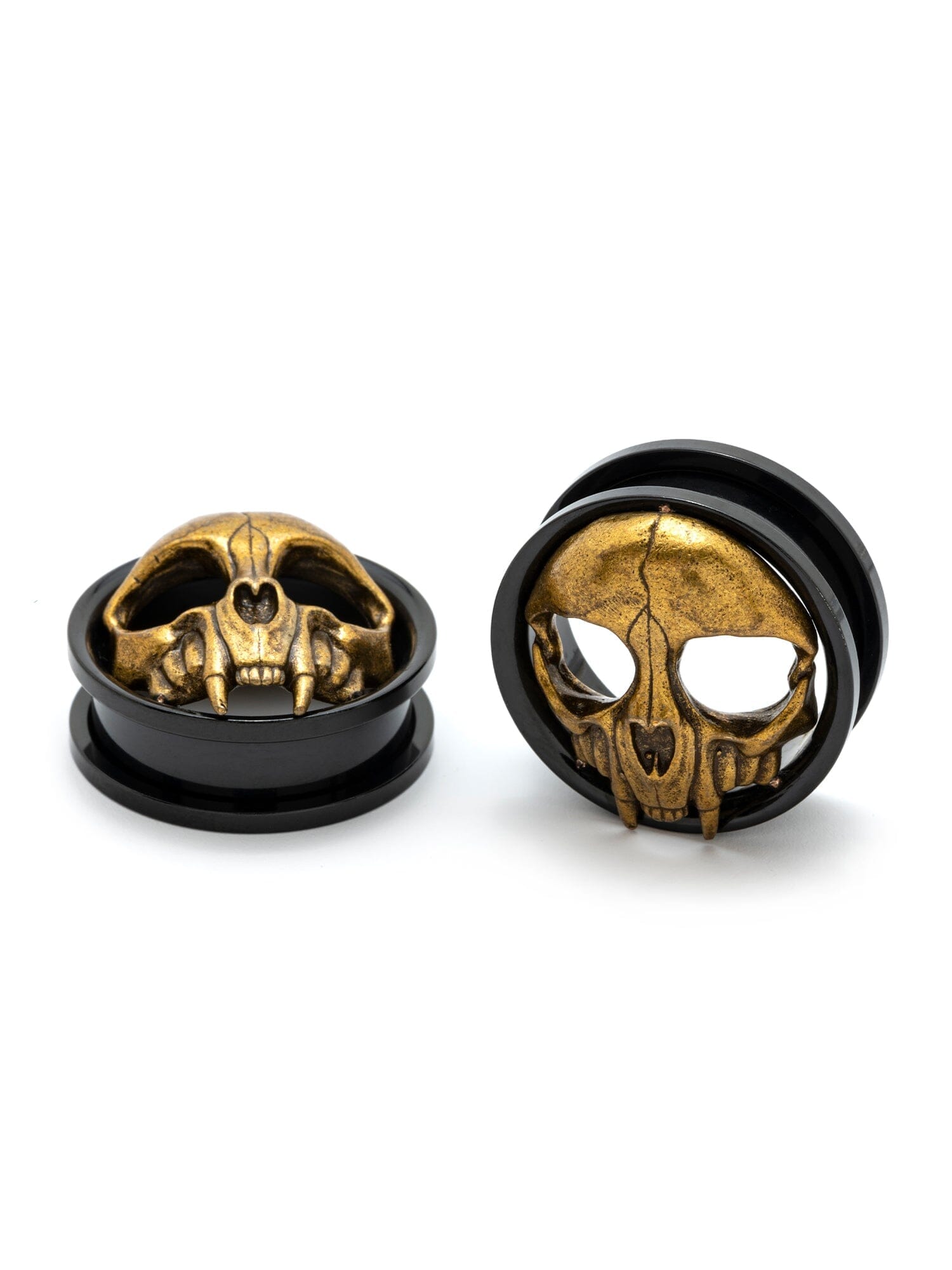 Gold Cat Skull Threaded Steel Tunnels Spooky Gauges 19mm 3 4 Very well made.