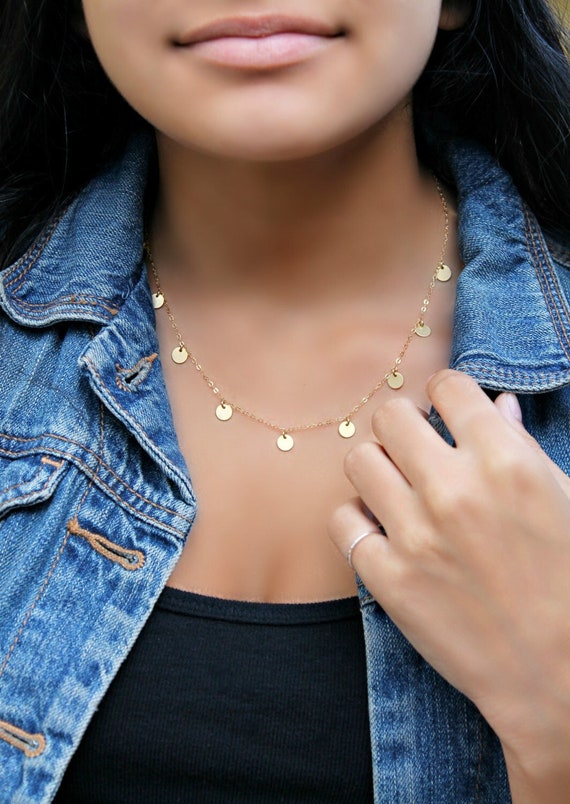 Gold Coin Necklace Fine 14K Gold Filled Chain Celebrity Inspired Mini Tiny Coins Little Discs Great for Layering Mimi Ikonn Etsy Very well made.
