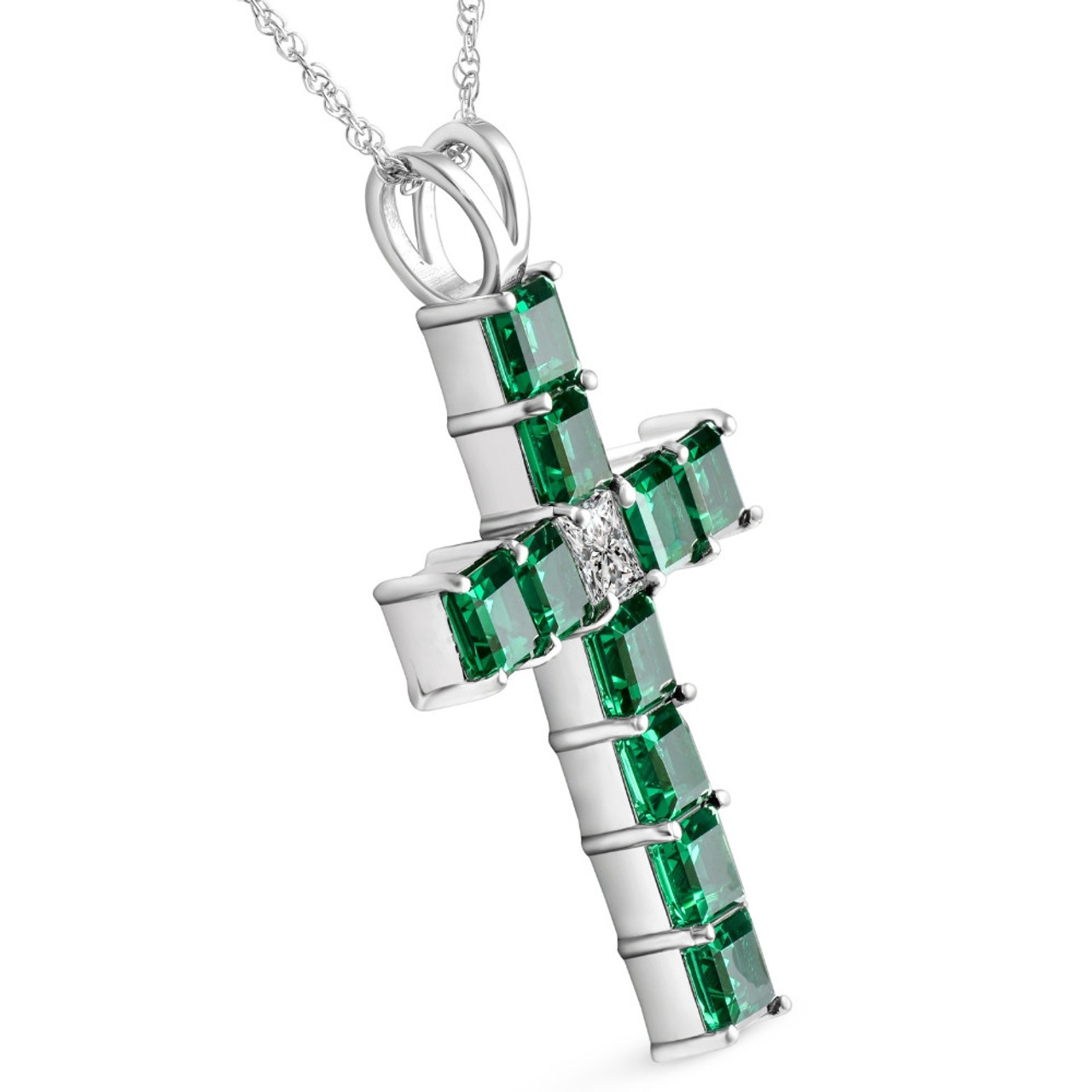 6Ct TW Princess Cut Diamond Emerald Cross Pendant Necklace Gold Lab Grown F G VS Very well made.
