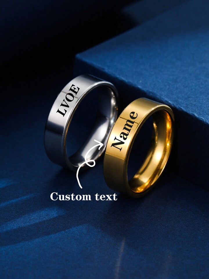 Customized Signet Ring Engrave Name Logo Photo Copule Jewelry Stainless Steel Round Mens for Family Very well made.
