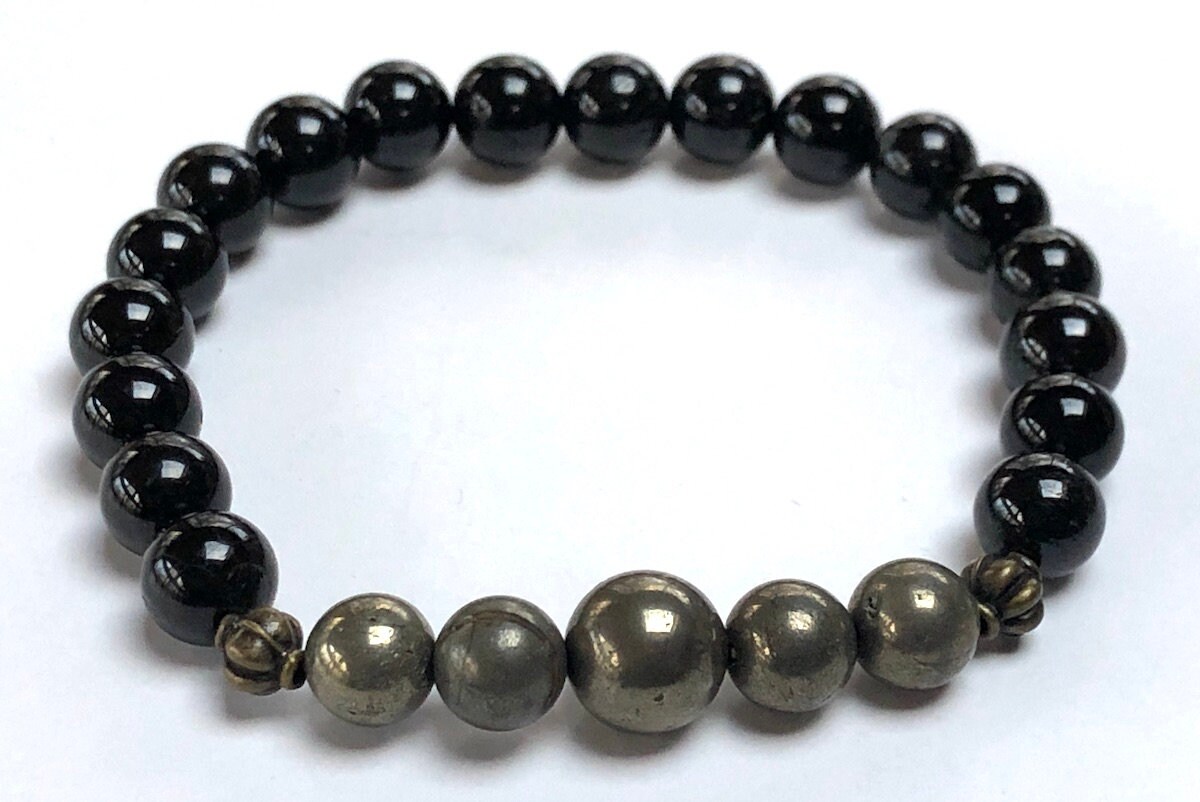 Pyrite and Black super Tourmaline Bracelet in Very well made.