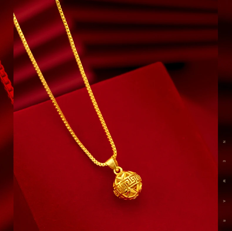 Pure Gold Color Pattern Small Embroidered Ball Pendant Necklaces for Women Gold Color Trendy Necklaces Chain Fine Jewelry Gifts AliExpress Very well made.