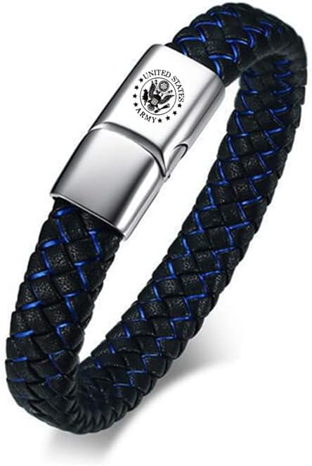 ZKXXJ Air Force Army Navy Bracelet for Men Stainless Steel Braided Leather Military Symbol Engraved Cuff Bracelets Recruit Veteran Jewelry for Him Clothing Shoes Jewelry Amazon Very well made.