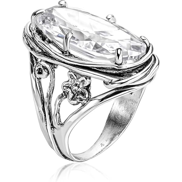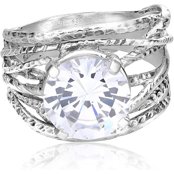 Statement Ring aus 925er Sterlingsilber weiB kissenformig Zirkonia CZ organischer Look Vintage Antik Look hypoallergen nickel und bleifrei handwerklich gefertigte Designerkollektion Israel Amazon ... Very well made.