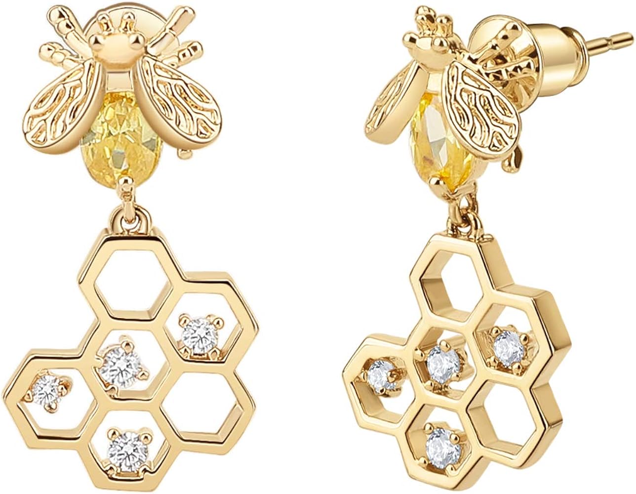 Amazon Emibele Dangle Earrings 925 Sterling Silver Needle Cubic Zirconia Brass Small Bee Honeycomb Drop Earrings for Women Ladies Adult Fashion Jewelry Accessories Champagne Gold Clothing Shoes Je... Very well made.