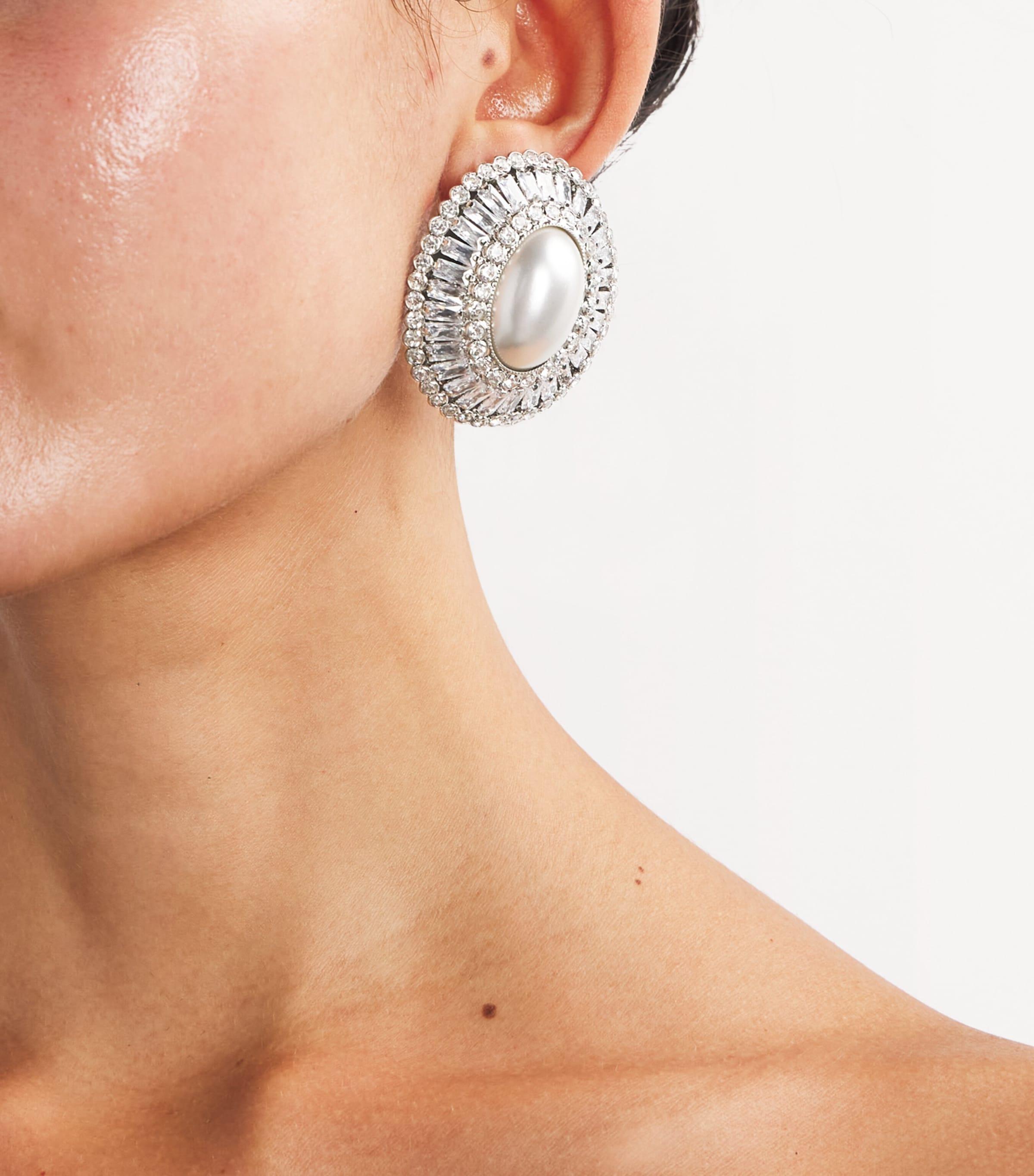Alessandra Rich Crystal embellished Pearl Clip on Earrings Runway Catalog Very well made.