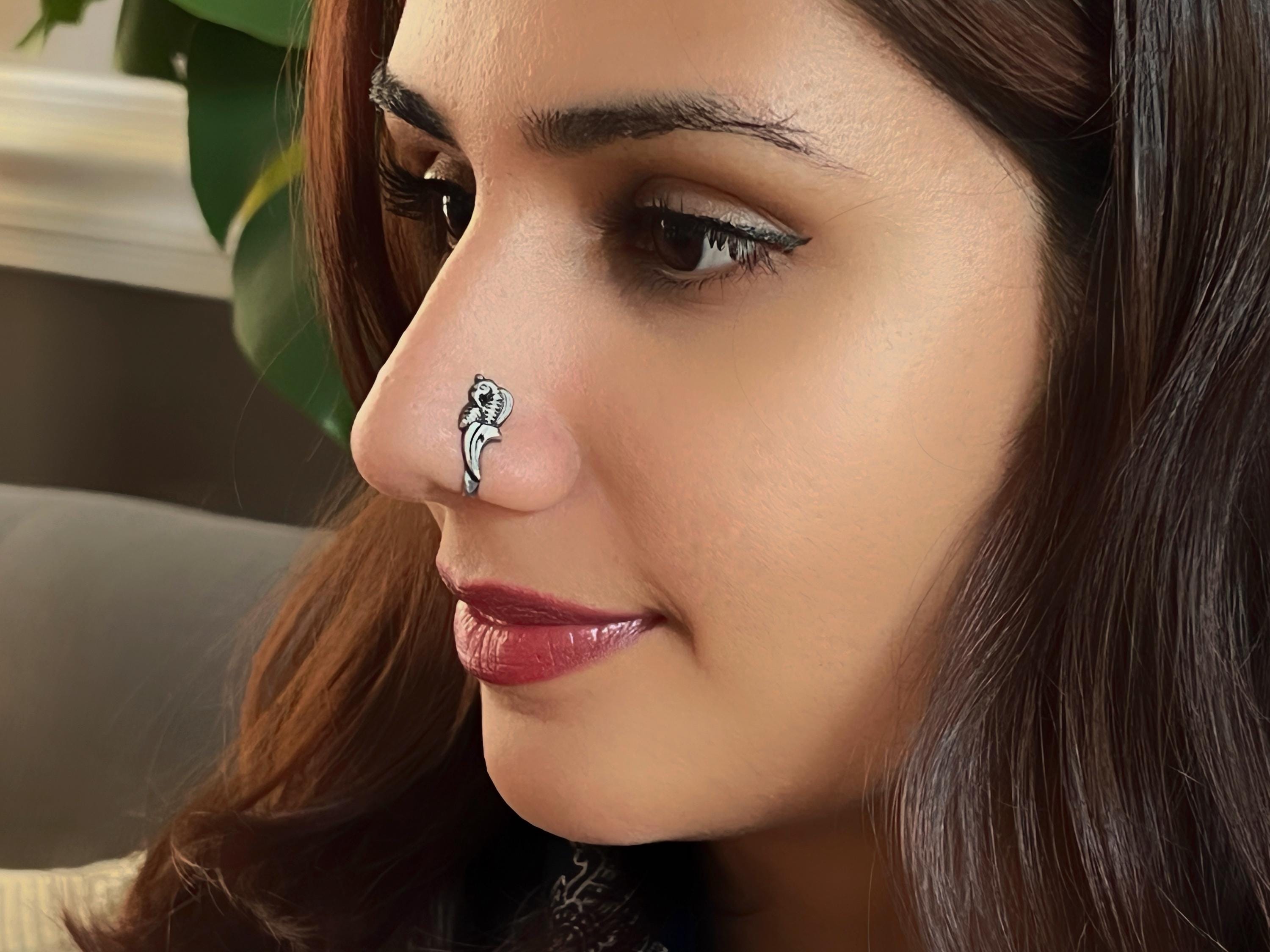 Handmade Sterling Silver Press On Nose Ring Adjustable Comfortable Nose Jewelry Antique Indian Jewelry Intricate Bird Nose Pin Very well made.