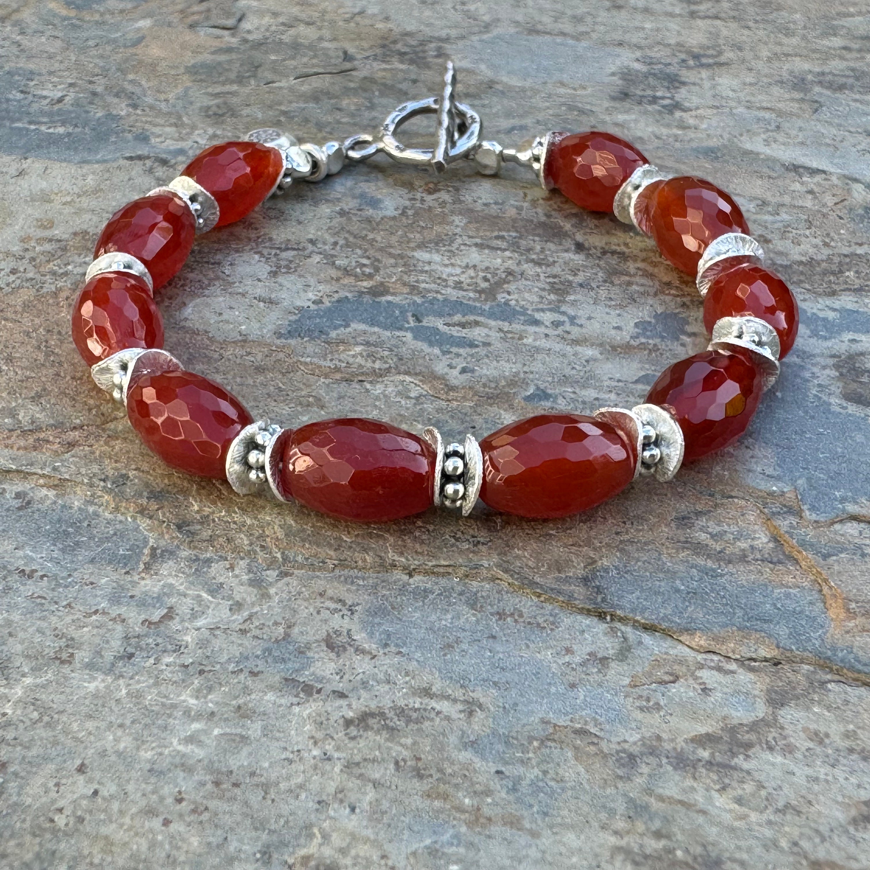 Carnelian gemstone and sterling silver bead bracelet recycled silver clasp Chris Osborn Jewellery Healing Very well made.