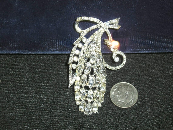 Vintage Elegant Crystal Rhinestone Flower Bud Brooch. Rhodium Plated 1940 s Jewelry 2293 Etsy Very well made.