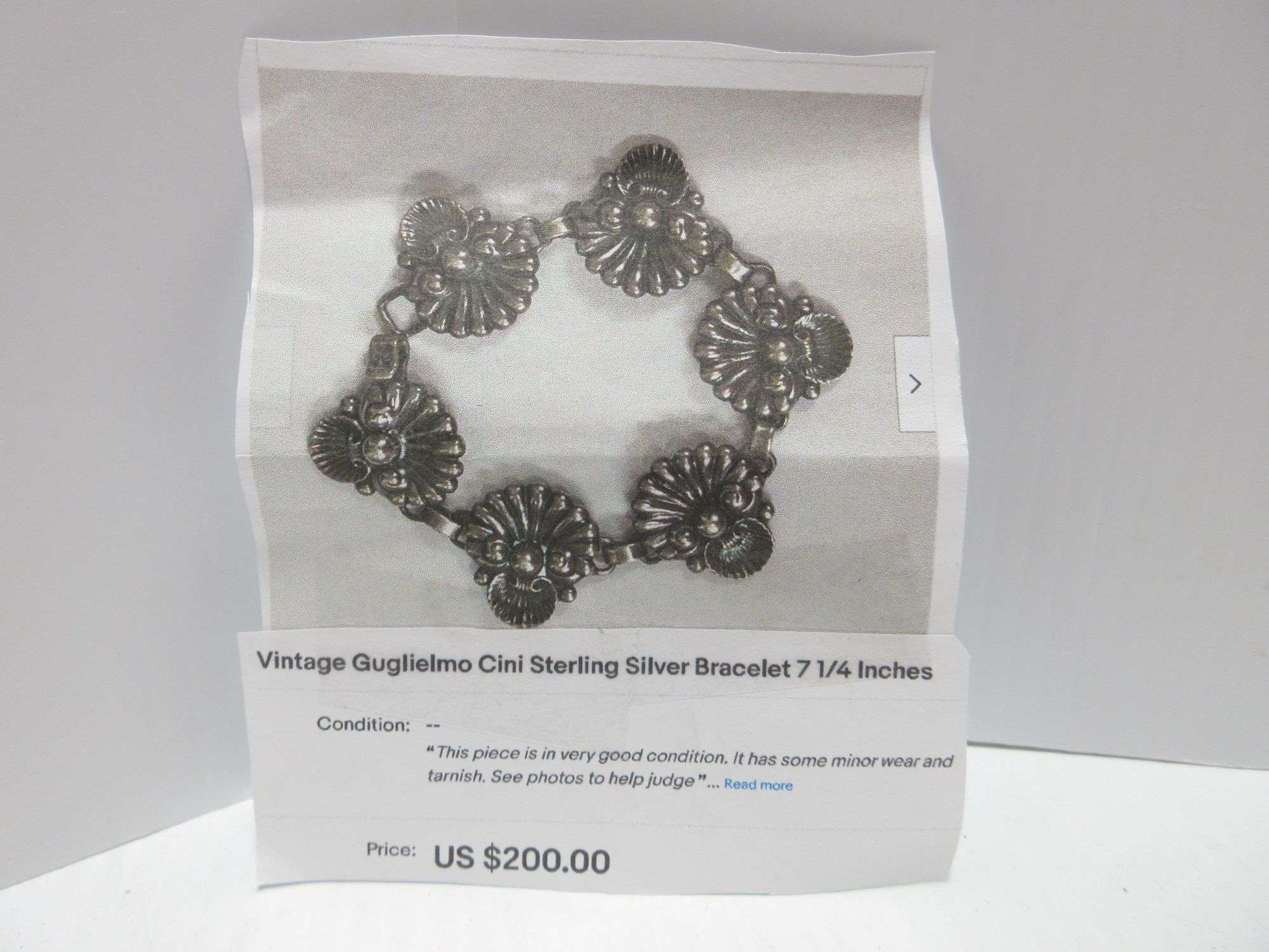 Antique Guglielmo cini filigree sterling silver bracelet 6 panels with hook and eye clasp built into the bracelet slightly curved panels 1 W x 7 1 4 L 20.3 grams signed highly desired and collectible ... Very well made.