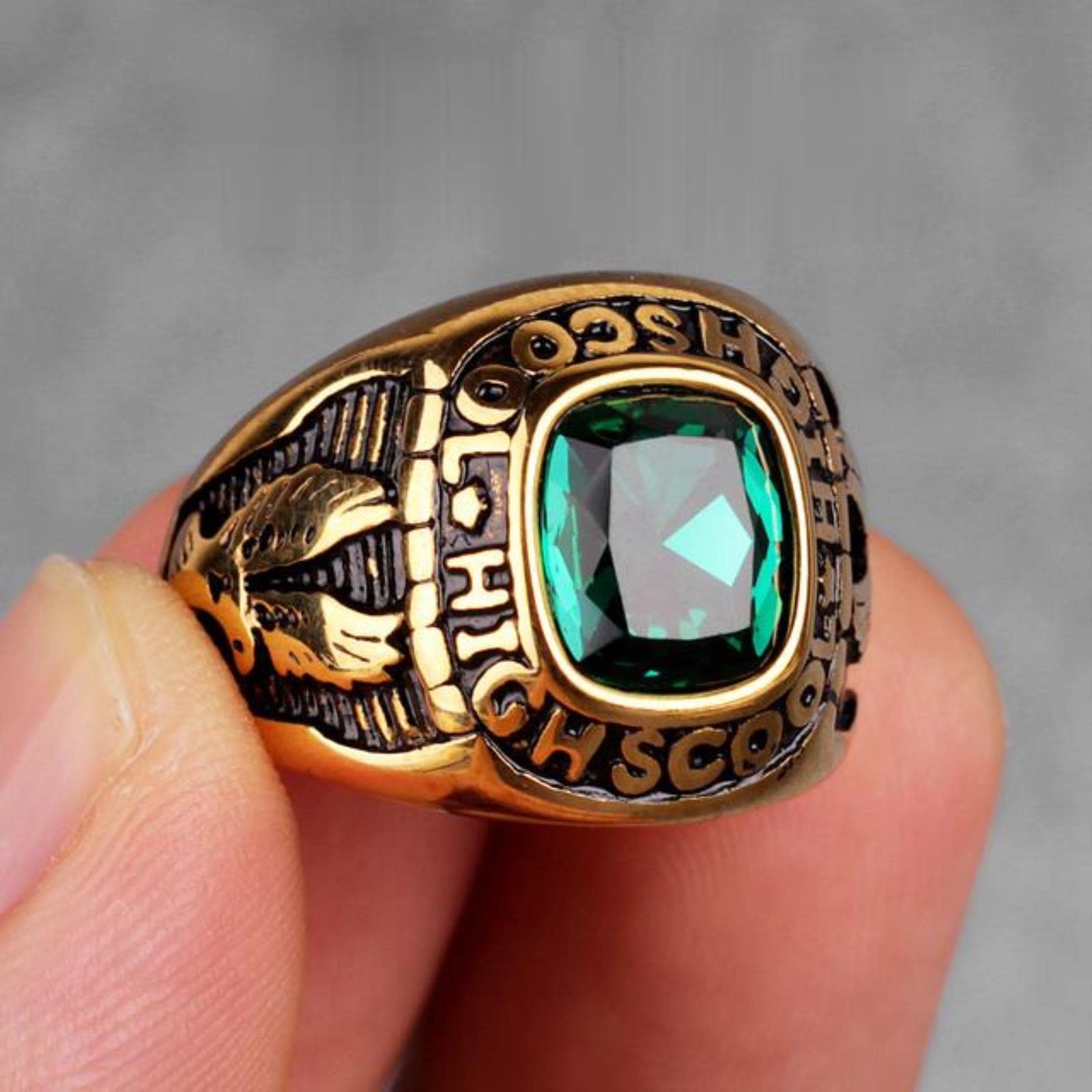 XJruixi Stainless Steel Men Rings Rhinestone High School Eagle Punk Hip Hop for Biker Male Boyfriend Jewelry Creativity Gift Wholesale Amazon Fashion Very well made.