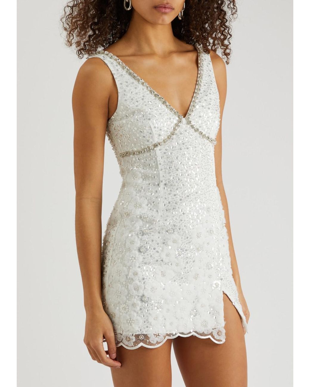 Self Portrait Sequin And Bead embellished Tulle Mini Dress in White Lyst UK Very well made.