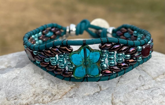 Turquoise N Deep Purple Leather Beaded Wrap Bracelet Turquoise Flower Boho Wrap Southwestern Beaded Womens Wrap Leather Jewelry Etsy Very well made.