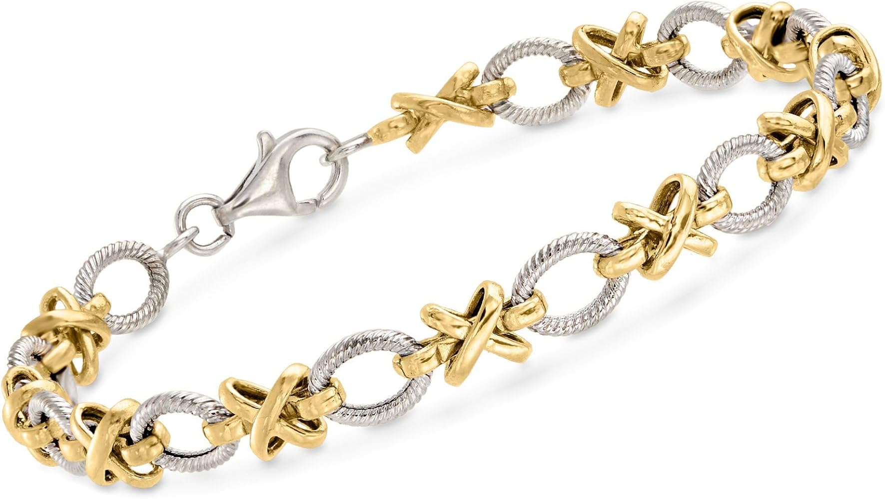 Ross Simons Sterling Silver and 14kt Yellow Gold Xo Link Bracelet Very well made.