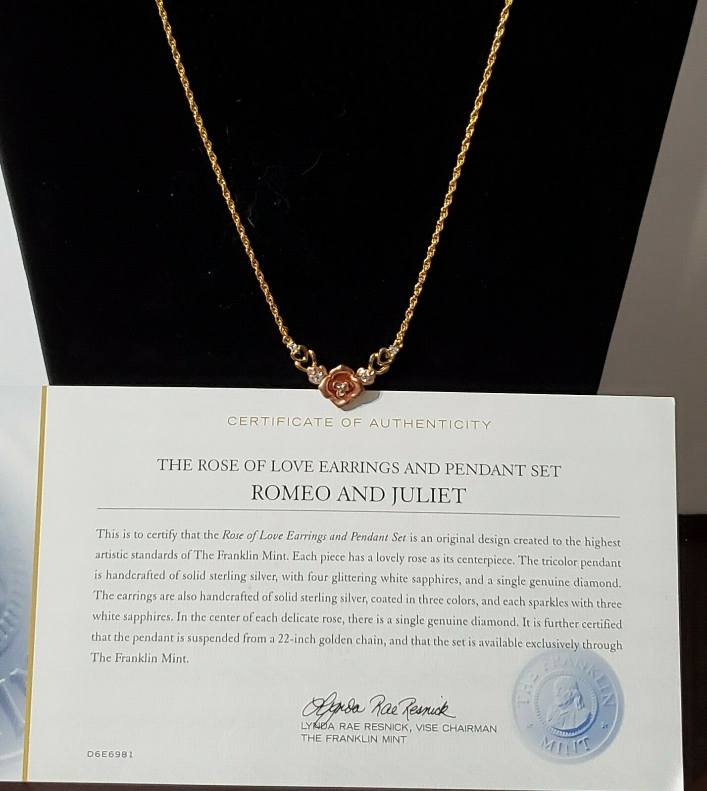 Franklin Mint Rose of Love Pendant Necklace Insipired By Romeo Juliet New COA eBay Very well made.
