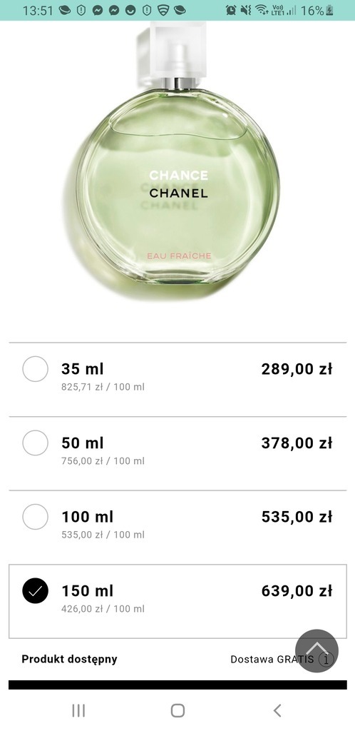 Chanel chance eau fraiche 150ml paragon Douglas Warszawa Kup Very well made.