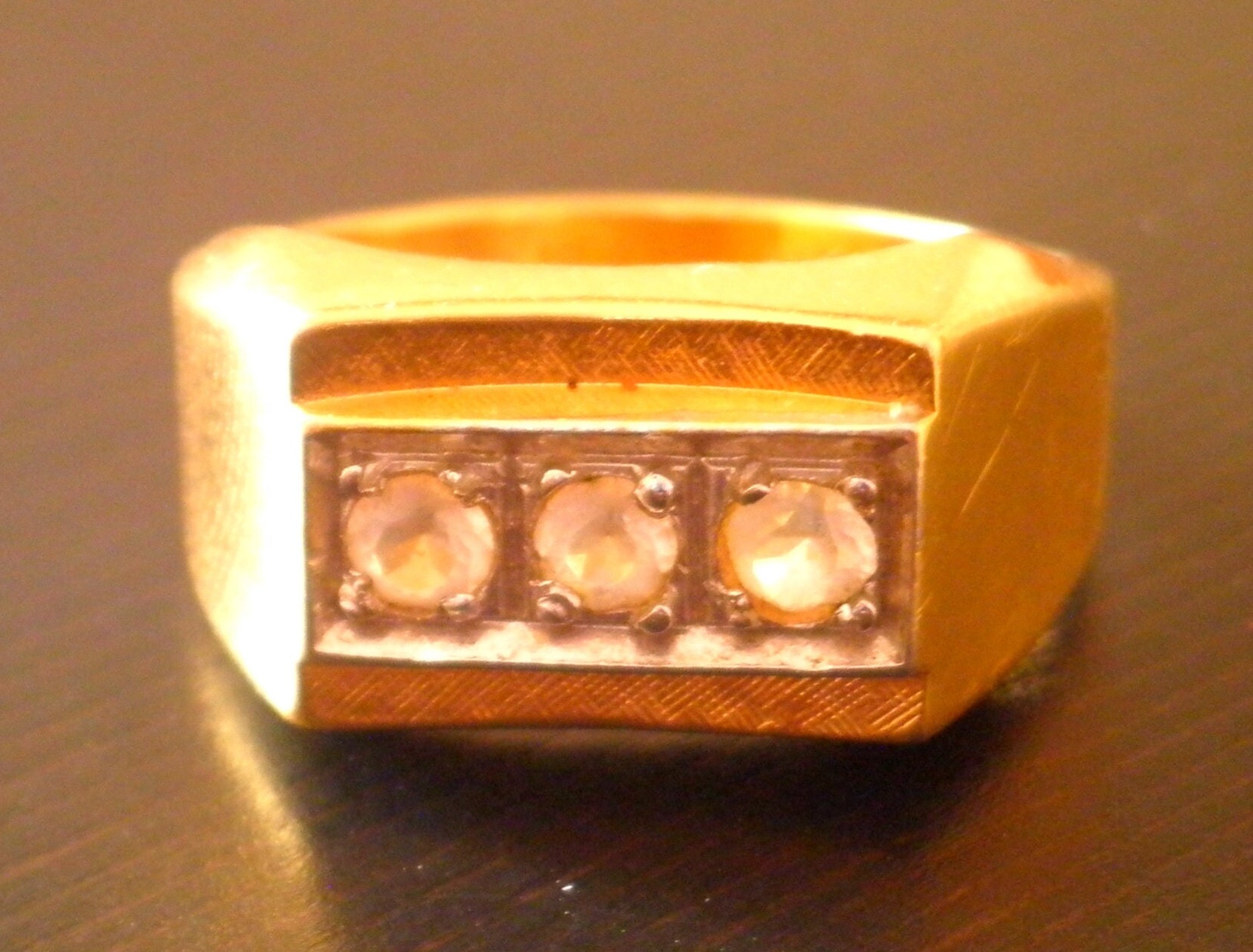 Antique 18kt HGE Signed UNCAS Karatclad Mens Ring Size 7.5 w Simulated Diamond Very well made.