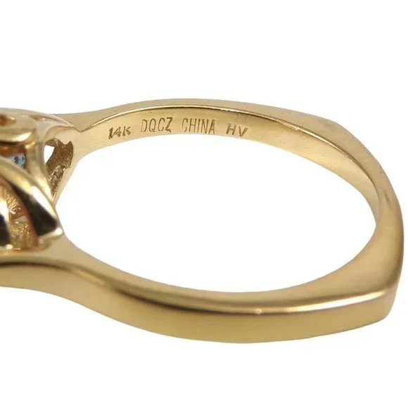 Solid 14K Yellow Gold Pink Sapphire London Blue Topaz DQ CZ Ring Size 7.5 Rings Very well made.