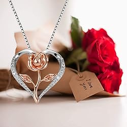 Klurent Rose Necklace For Women Christmas Necklace With Gift Box Rose Gold Flower Silver Heart Pendant Unique Necklaces Gift For Wife Mom Girlfriend On Christmas Birthday Anniversary on Galleon Philip... Very well made.