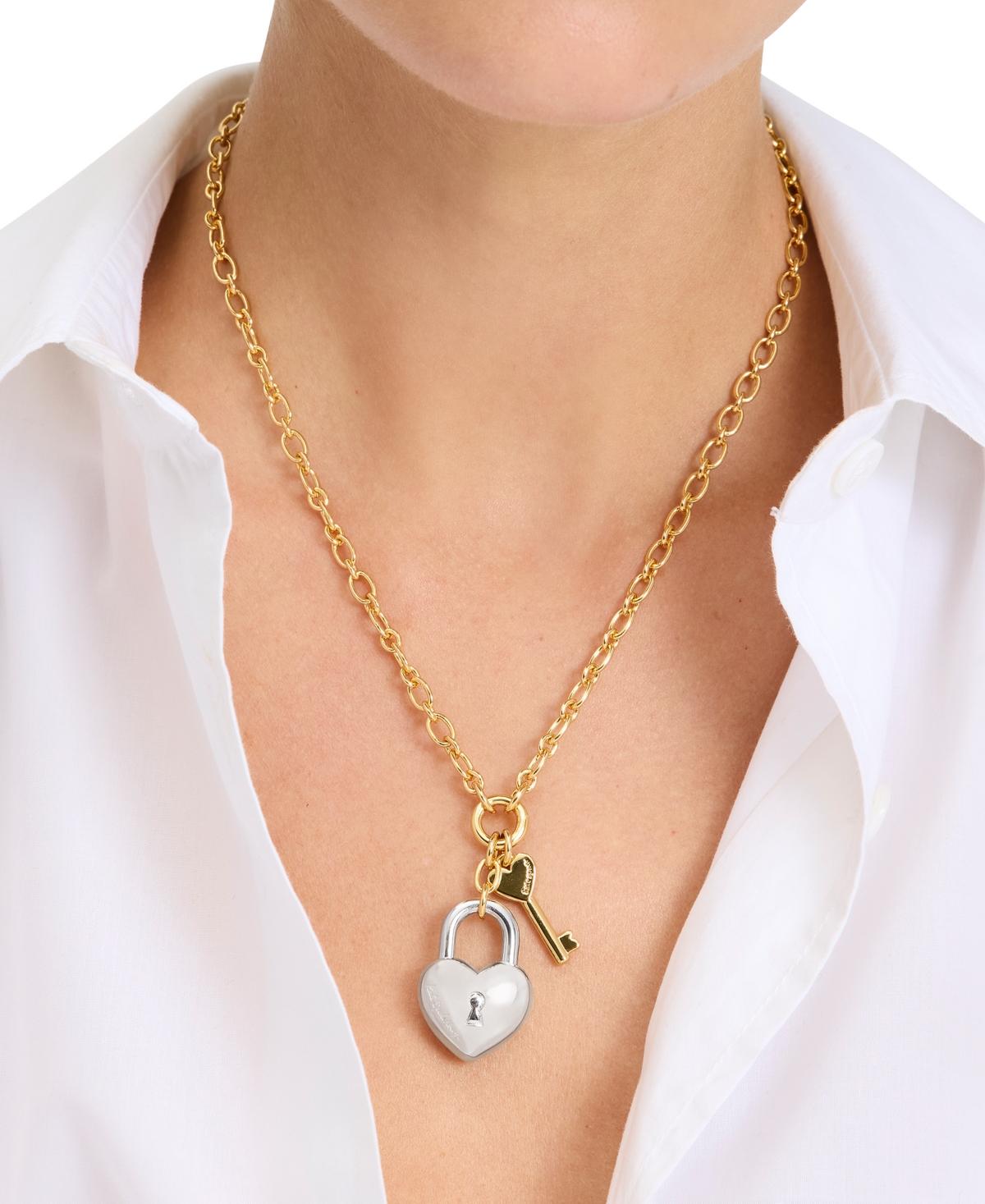 Kate Spade Two tone Heart Lock Key Statement Pendant Necklace in Metallic Lyst Very well made.