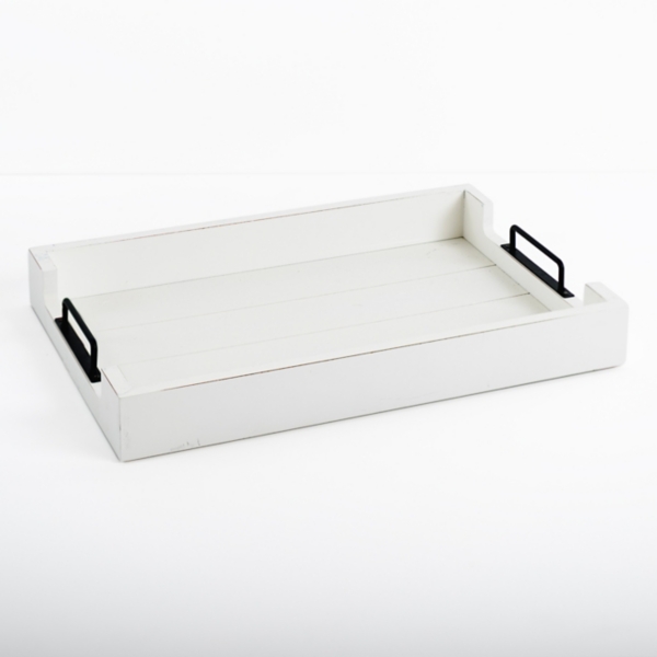 White Slatted Wood Metal Handles Tray Kirklands Home Very well made.