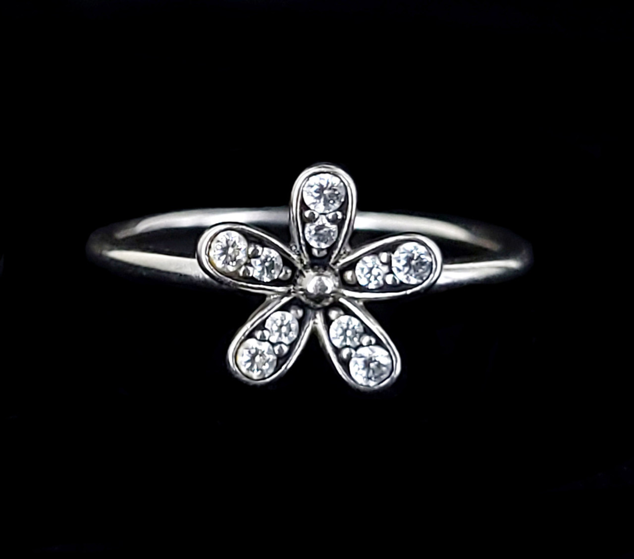 Vintage Sterling Silver Pandora Flower Dazzling Daisy Rhinestone 925 ALE Ring s 7 Ellis Antiques Very well made.