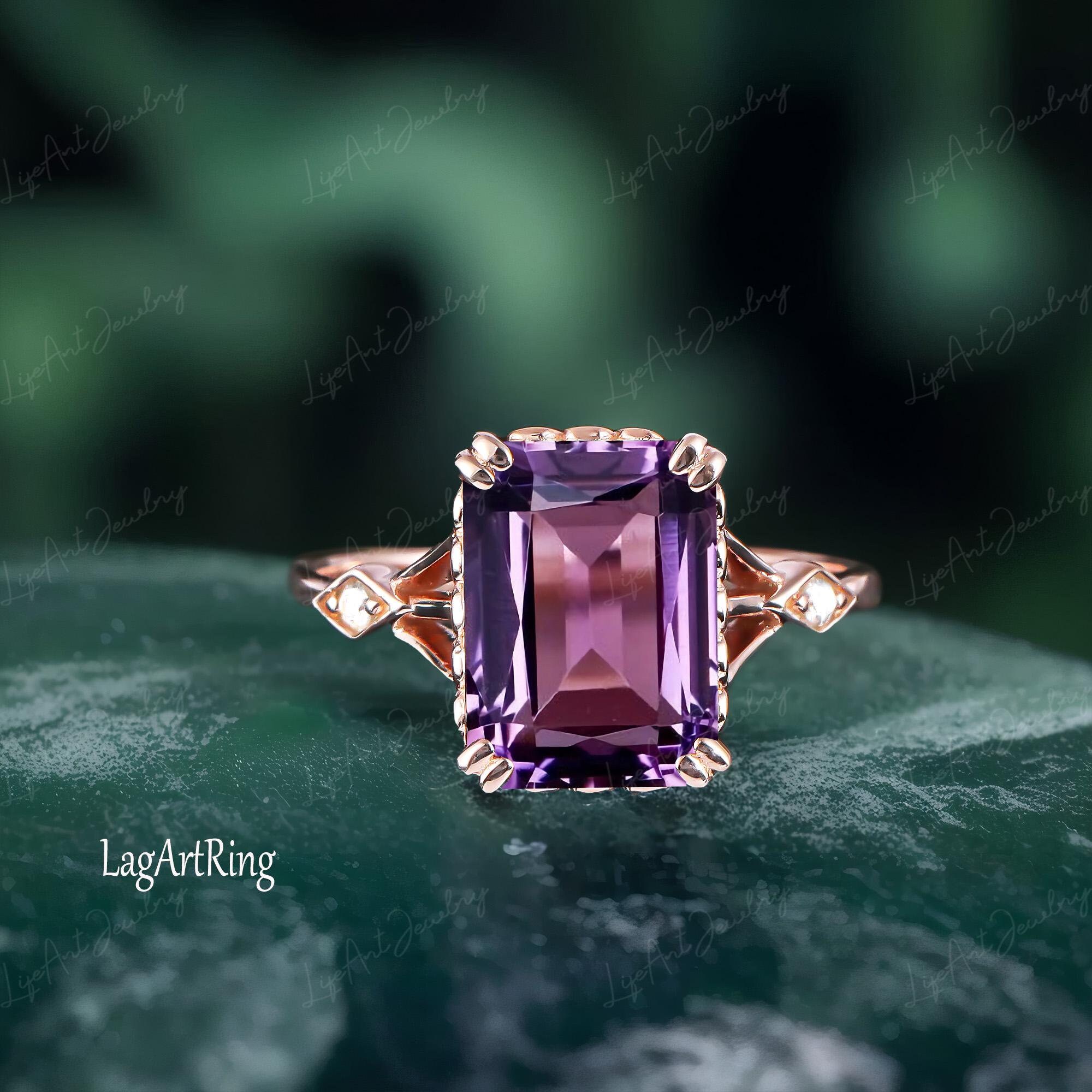4CT Unique Natural Amethyst Engagement Ring Vintage Rose Gold Engagement Ring Women Art Deco Moissanite Promise Anniversary Ring for Her Etsy Very well made.