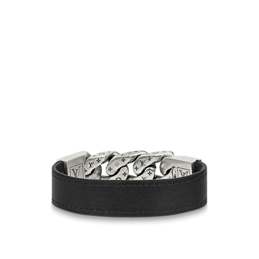 LOUIS VUITTON Monogram Cuban Link Bracelet M Silver Black 1348683 FASHIONPHILE Very well made.
